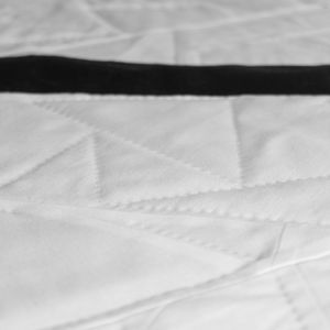 I wanted to experiment with the same white, pieced fabric overtop black batting technique to create the design. In contrast to my previous quilt, this time I wanted to use improv piecing.